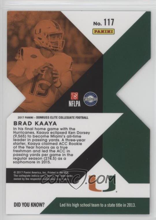 2017 Panini Elite Draft Picks Status Red Die-Cut #117 – Brad Kaaya 6/49
