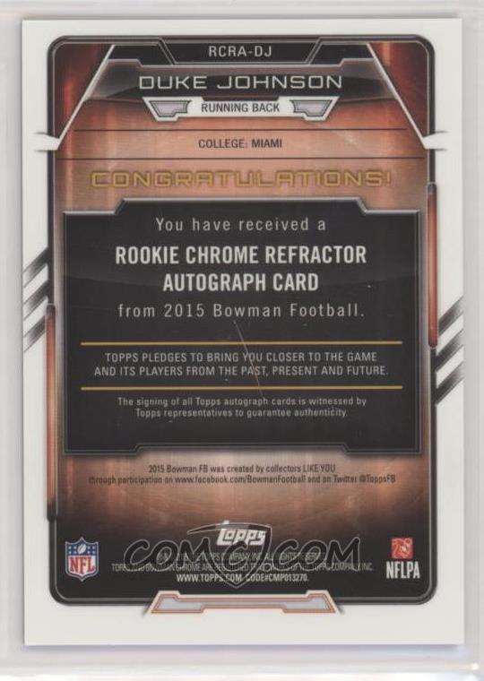 2015 Bowman Chrome Rookie Autographs Refractors Blue #RCRADJ Duke Johnson