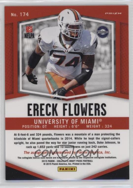 2015 Panini Prizm Draft Picks Autographs Prizms Blue #174 Ereck Flowers