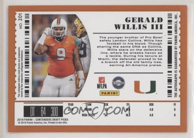 2019 Panini Contenders Draft Picks #201 Gerald Willis III