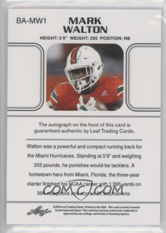 2018 Leaf Ultimate Draft – 90 Leaf Autographs – Gold #BA-MW1 – Mark Walton 12/25