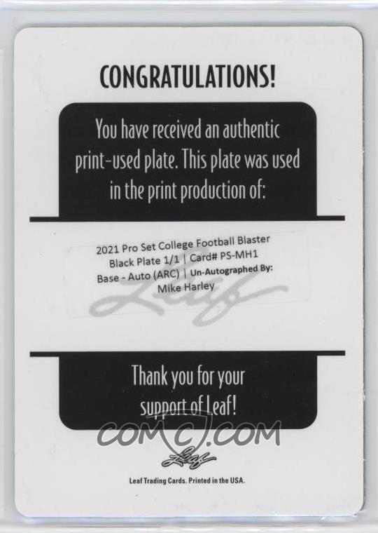 2021 Leaf Pro Set College Autographs Print Plates Black #PSMH1 Mike Harley