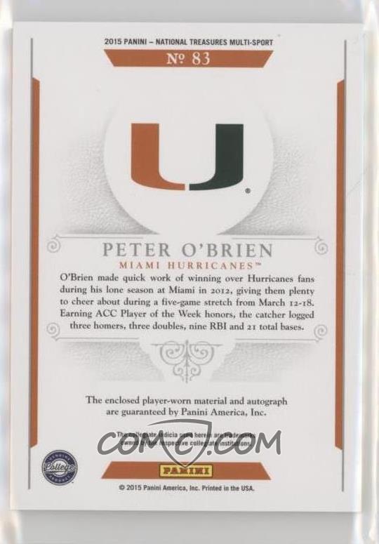 2015 Panini National Treasures Collegiate Multisport Materials Signatures Silver #83 Peter O’Brien/25