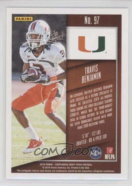 2016 Panini Contenders Draft Picks Bowl Ticket #97 Travis Benjamin Travis Benjamin